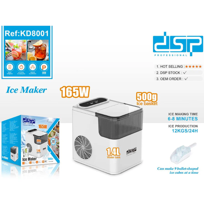 با یخ ساز دی اس پی مدل KD8001، همیشه از یخ تازه و آماده لذت ببرید! این دستگاه اصلی با طراحی شیک و عملکرد سریع، یخهای کریستالی و خنک را در کمترین زمان ممکن برای شما فراهم میکند. مناسب برای مهمانیها و روزهای گرم تابستان، هرگز نگران کمبود یخ نباشید. همین حالا خرید کنید و تازهترین تجربه را احساس کنید!