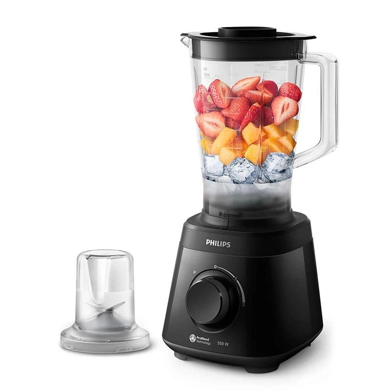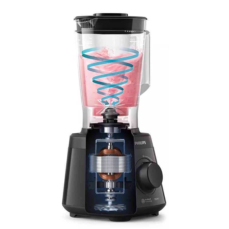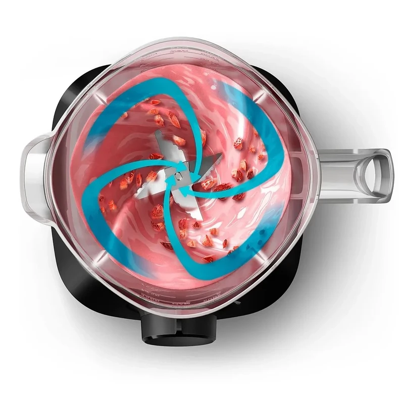 توان مصرفی ۵۵۰ وات، پارچ مخلوط کن با گنجایش ۱.۵ لیتر از جنس طلق، دور موتور متغییر با دو سرعت قابل تنظیم بهمراه حالت پالس (لحظه ای)، دارای ظرف آسیاب جهت پودر کردن مغزیجات، سبزیجات خشک، دارچین و …، قابلیت خردکردن یخ، دارای پایه های چسبان که در هنگام استفاده و میکس مواد غذایی پارچ لرزش و تکان نداشته باشد، پارچ مخلوط کن با چهار تیغه از جنس استیل که براحتی مواد را در کسری از ثانیه میکس میکند، قابلیت شستشو پارچ در ماشین ظرفشویی، دارای ترموستات محافظ موتور که در هنگام داغ شدن بیش از حد موتور قطع میشود و بعد از سرد شدن مجدد وصل میشود، قطعات پلاستیکی عاری از هرگونه مواد شیمیایی (BPA FREE)، طراحی و مهندسی محصول در کشور هلند مونتاژ نهایی در کشور برزیل